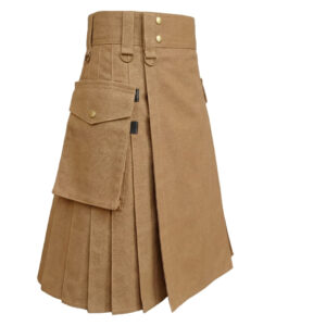 Tan Khaki Heavy-Duty Cotton Firefighter Kilt for Men – Reflective Safety Tape Utility Kilt, Durable Workwear Kilt