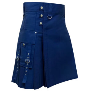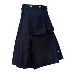 Black Cotton Utility Work Kilt for Men – Modern Scottish Design with Blue Stitching & Custom Fit