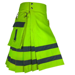 Men’s Neon Green Utility Kilt with Reflective Tape Waterproof Workwear Kilt with Cargo Pockets & Adjustable Fit