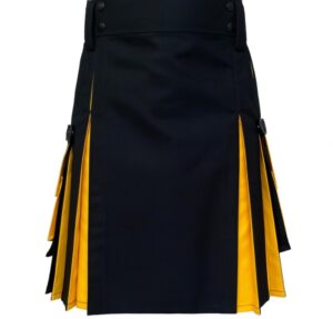 Black & Yellow Hybrid Utility Kilt for Men – Gothic Streetwear Kilt with Cargo Pockets & Adjustable Straps