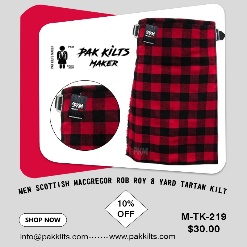 MEN SCOTTISH MACGREGOR ROB ROY 8 YARD TARTAN KILT MEN SCOTTISH MACGREGOR ROB ROY 8 YARD TARTAN KILT AUTHOR pakkilts View all posts by pakkilts Pak Kilts working Since 15 Years.We sell wholesale prices to retailers and distributors for resale the items. PAK KILTS is the Official place of Scottish Kilts and Utility kilts in Sialkot. Up to 25 Workers stitch Daily 150 to 200 Kilts.