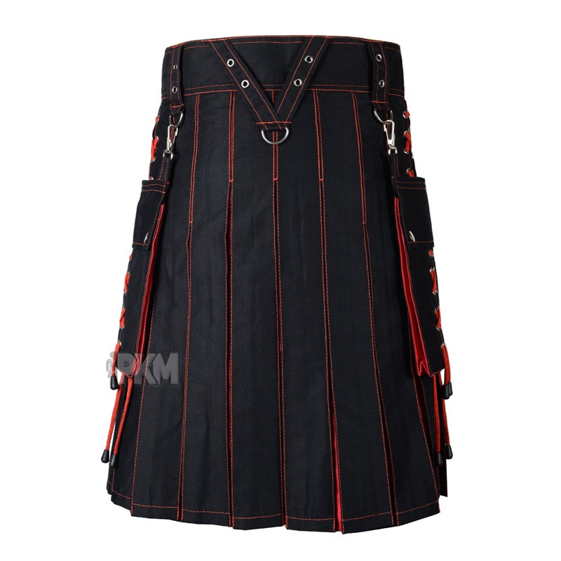 New Red and Black Hybrid Cotton Utility Kilt for Men