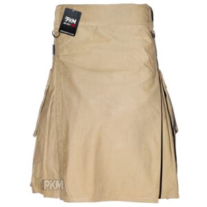 Scottish Mens highland Utility Kilt In Different Colors . Whether you are looking for a kilt to wear on formal or informal occasions, in either case, our utility kilt for men collection has the perfect options to choose from. These traditional utility kilts are made with premium cotton fabrics by expert kilt-makers. To keep your accessories, the utility kilt comes with large flapped pockets on either side. The front apron is made plain, and buttons are present on the top to fasten the kilt. For size adjustment buckled, straps are attached at the top right, below the waist of the apron.