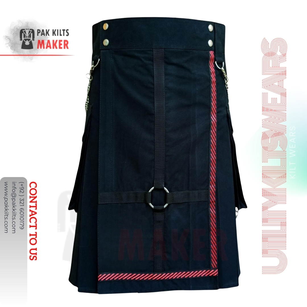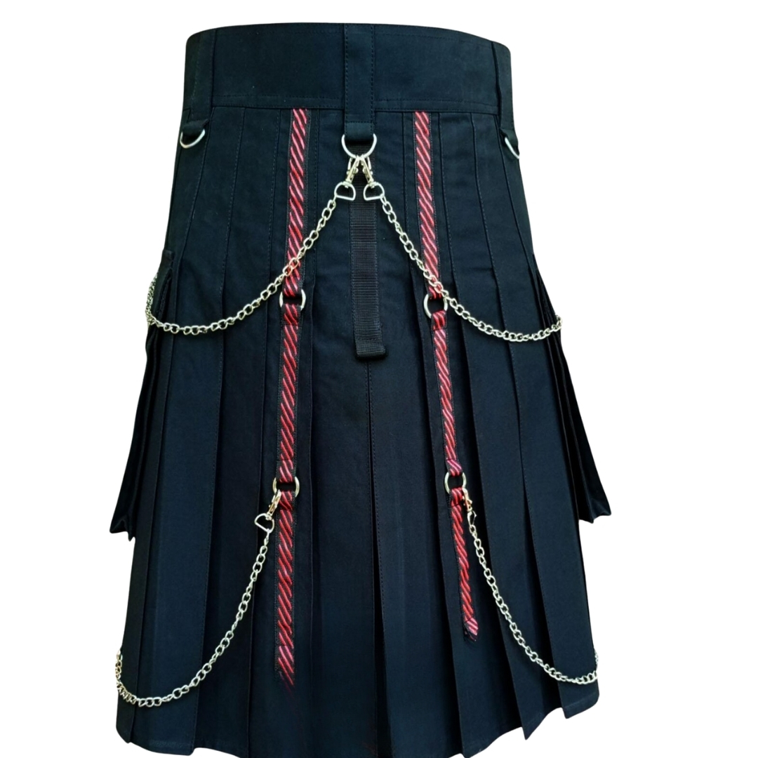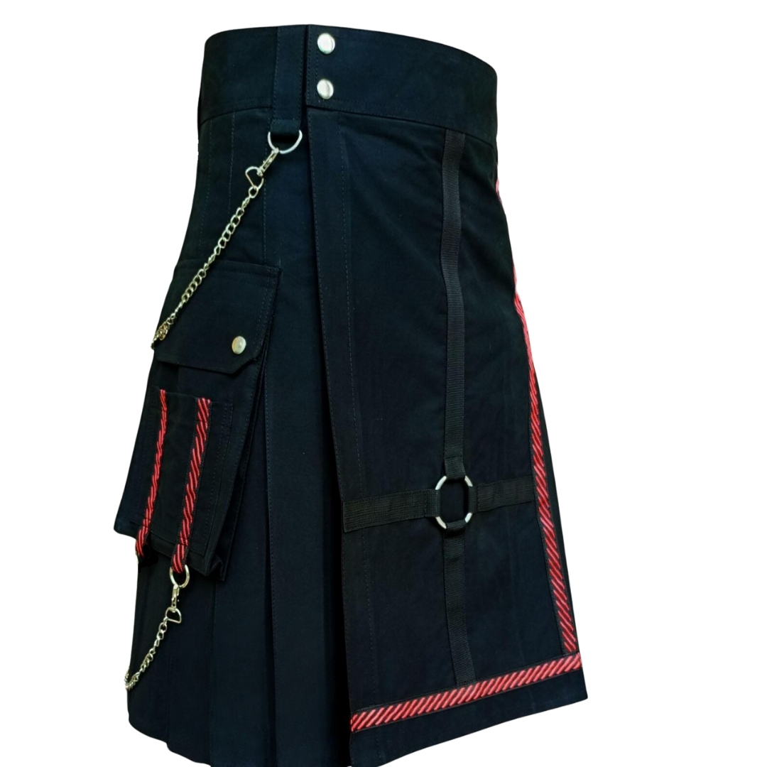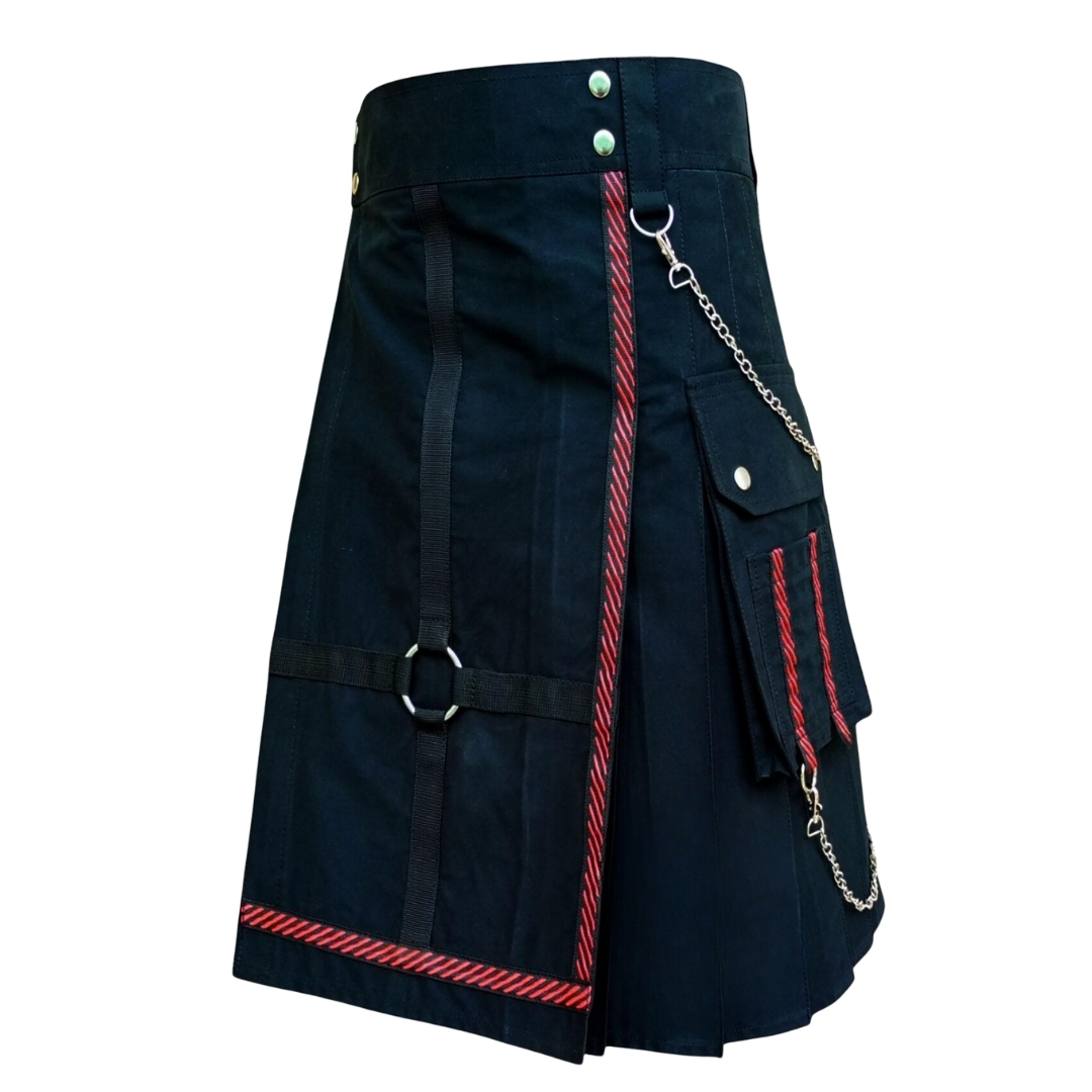 Gothic Solid Black Utility Kilt for Men – Modern Fashion Kilt, Everyday Wear Street Style, Adjustable Strap Scottish Utility Kilt
