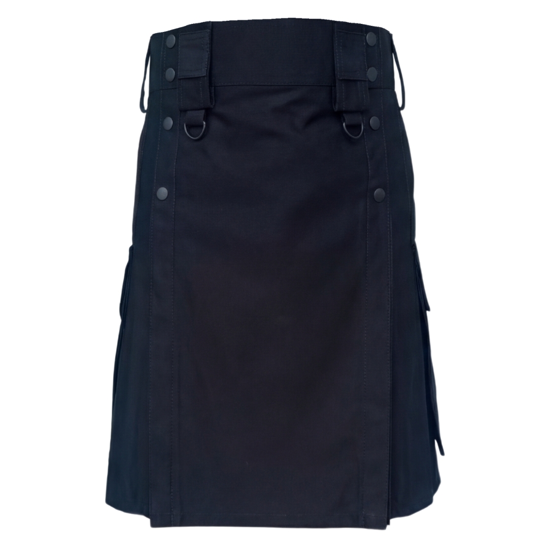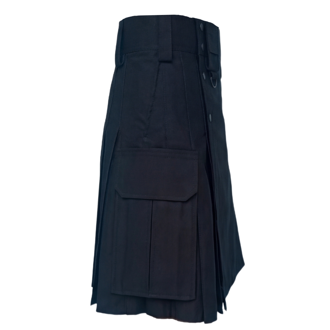Men’s Black Utility Kilt Heavy Duty Tactical Cotton Cargo Workwear – Custom Fit