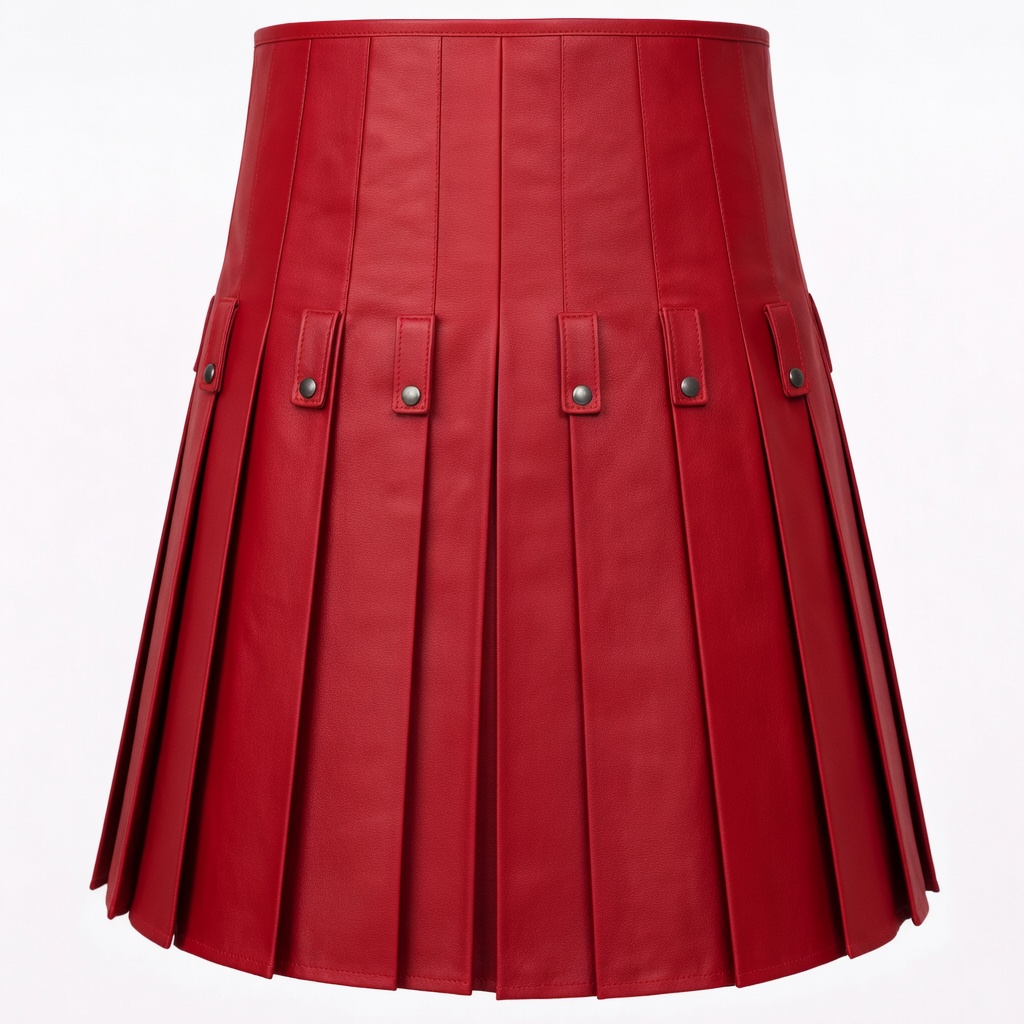 Make a bold statement with this Red Leather Unisex Kilt, designed for those who love edgy fashion with a modern twist. Crafted from premium quality leather, this kilt combines classic pleated design with gothic-inspired elements, creating a unique and eye-catching look.